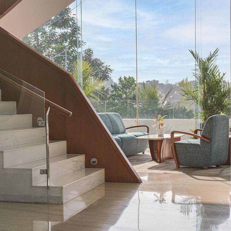 Senior Executive  مساحة أوسع (~52 م²) مع مناظر مدينة أو جبال.